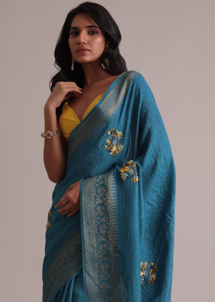 Regal Elegance - 120 Count Pure Linen Handloom Saree with Blouse in Royal Blue
